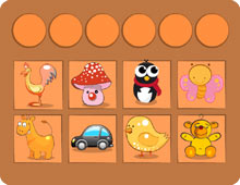 Gra pamięciowa dla przedszkolaków i dla dzieci starszych. Skup się i zapamiętaj kolejność rysunków. Komputer wymiesza rysunki i przeniesie je na okrągłe pola. Musisz przenieść rysunki znowu na kwadratowe pola i ustawić je w odpowiedniej kolejności.